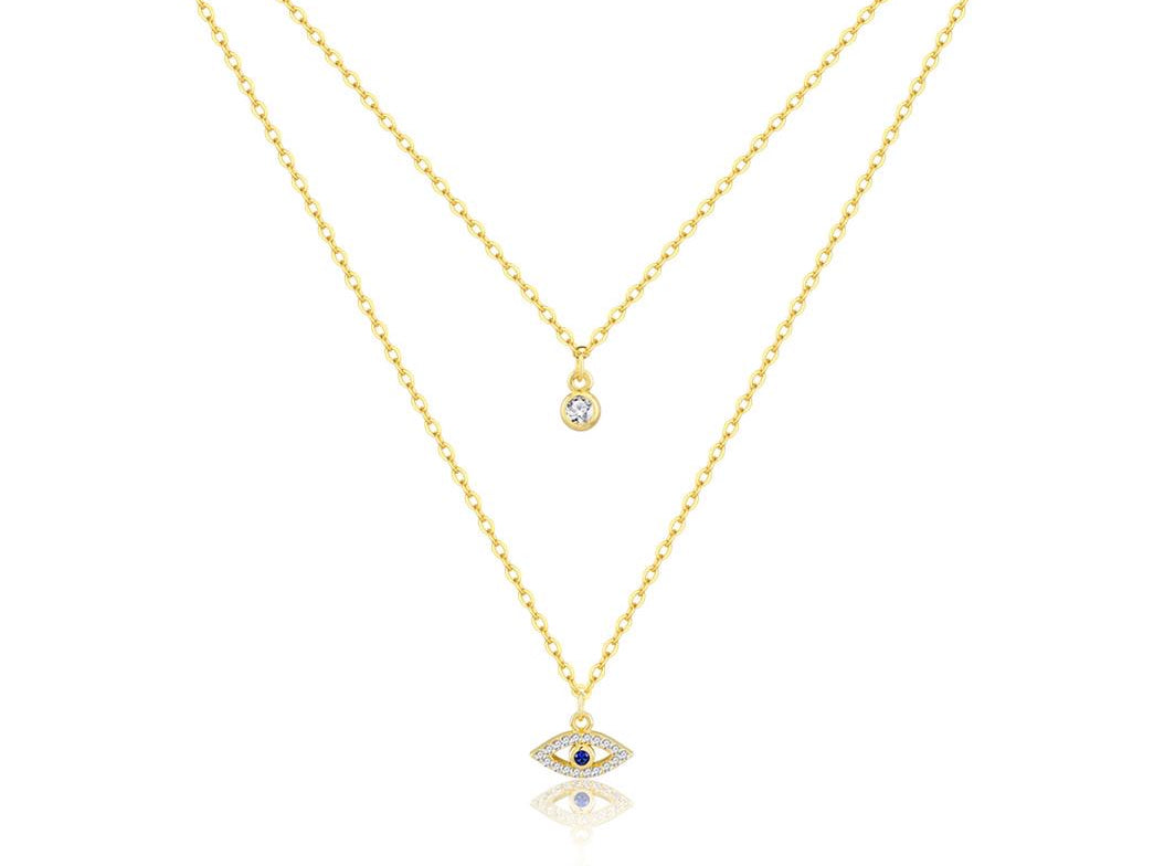 Daya Double Strand Eye Necklace – Sterling Silver/18K Gold