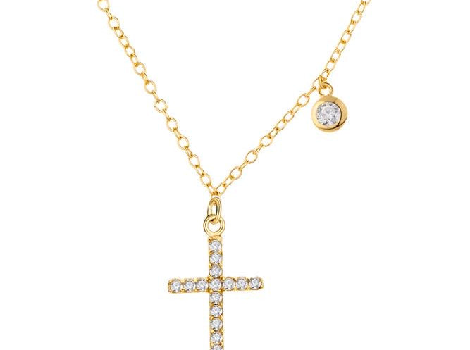Daya Sterling Silver Necklace - CZ Cross (Gold)