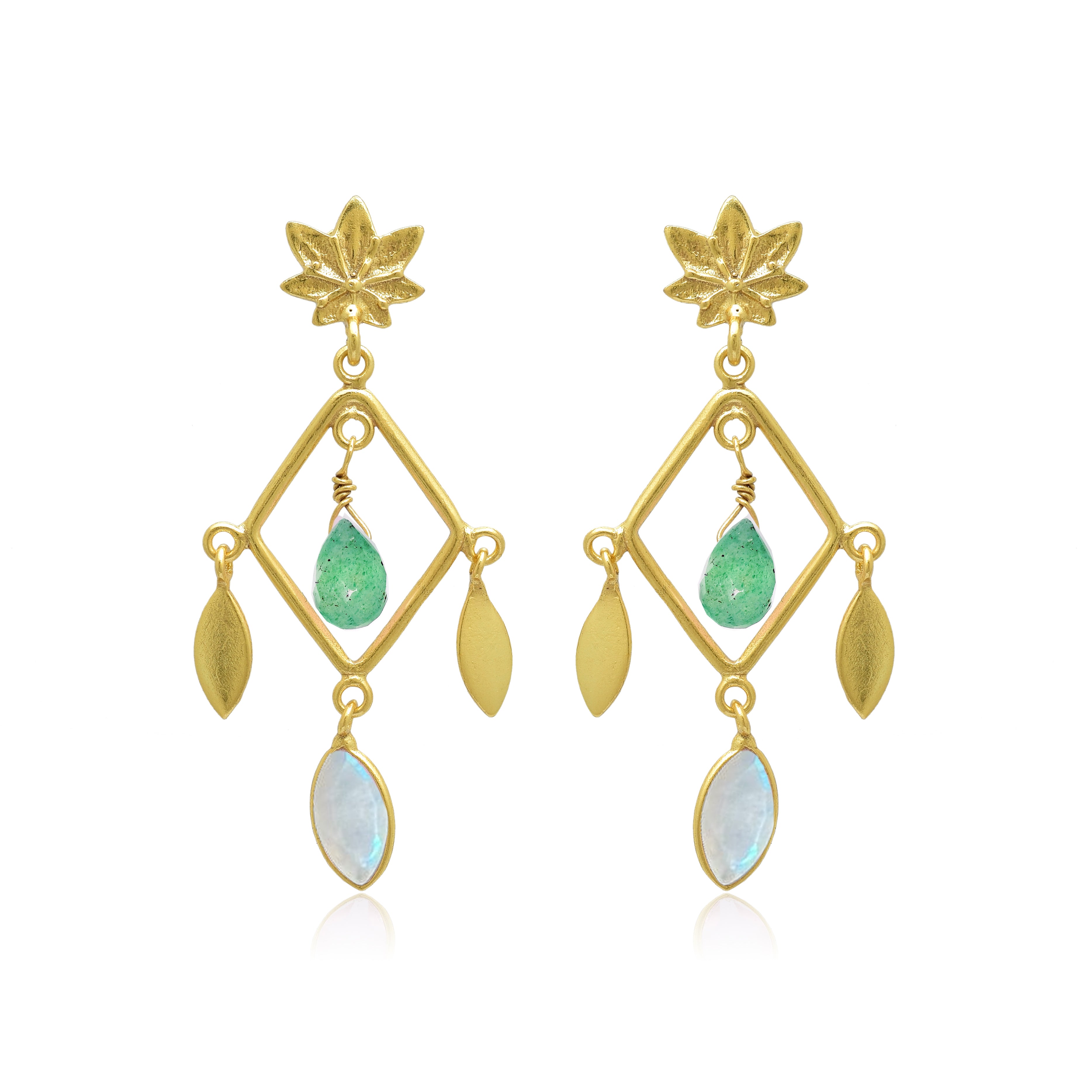 Aura Sabina Gemstone Earrings – Green Strawberry/ Moonstone